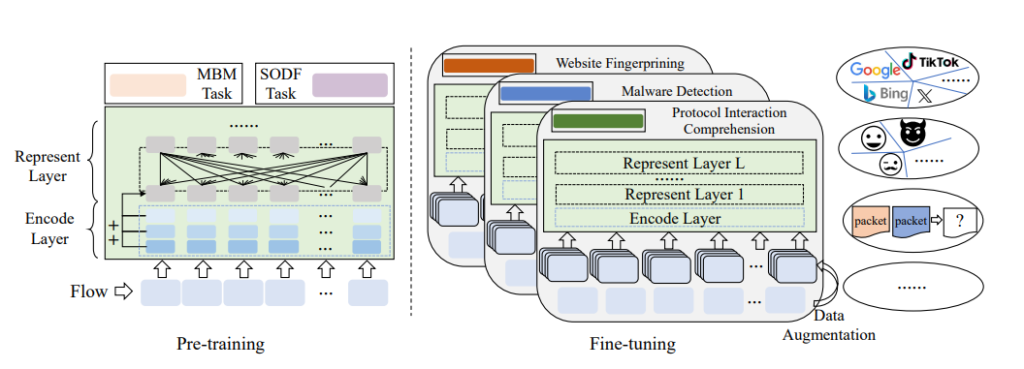 TrafficFormer is a pre-training model designed for network traffic data to address the challenge of limited labeled datasets. In the pre-training stage, it introduces a fine-grained multi-classification task to enhance traffic representation, while in the fine-tuning stage it proposes a traffic data augmentation method that leverages random field initialization to help models focus on key information. Extensive evaluations on traffic classification and protocol understanding tasks show that TrafficFormer improves F1 scores by up to 10% across six datasets and significantly outperforms existing pre-training approaches in protocol understanding.