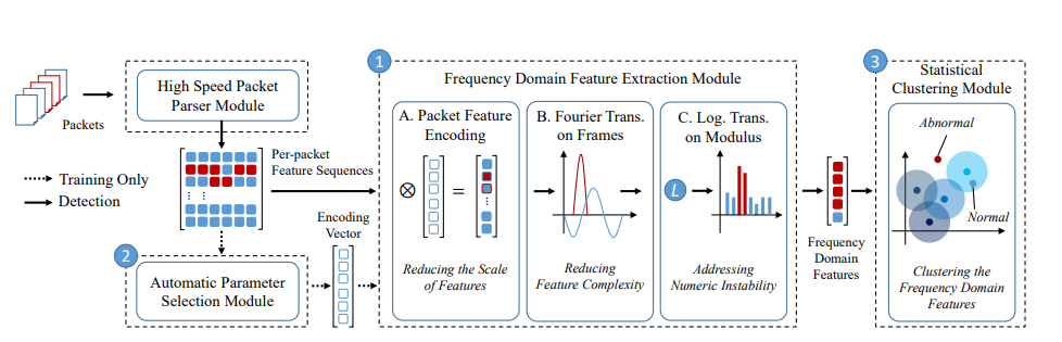 Whisper is a real-time malicious traffic detection system based on machine learning. It leverages frequency-domain features to represent sequential traffic information with bounded information loss, ensuring both high detection accuracy and high throughput. By constraining the feature scale, Whisper achieves efficient real-time detection even in high-throughput networks. Compared with traditional rule-based and existing ML-based systems, it is more robust against sophisticated and stealthy evasion attacks. Extensive experiments on 42 attack types demonstrate that Whisper improves AUC by up to 18.36% and achieves two orders of magnitude higher throughput, while maintaining around 90% detection accuracy under various evasion scenarios.